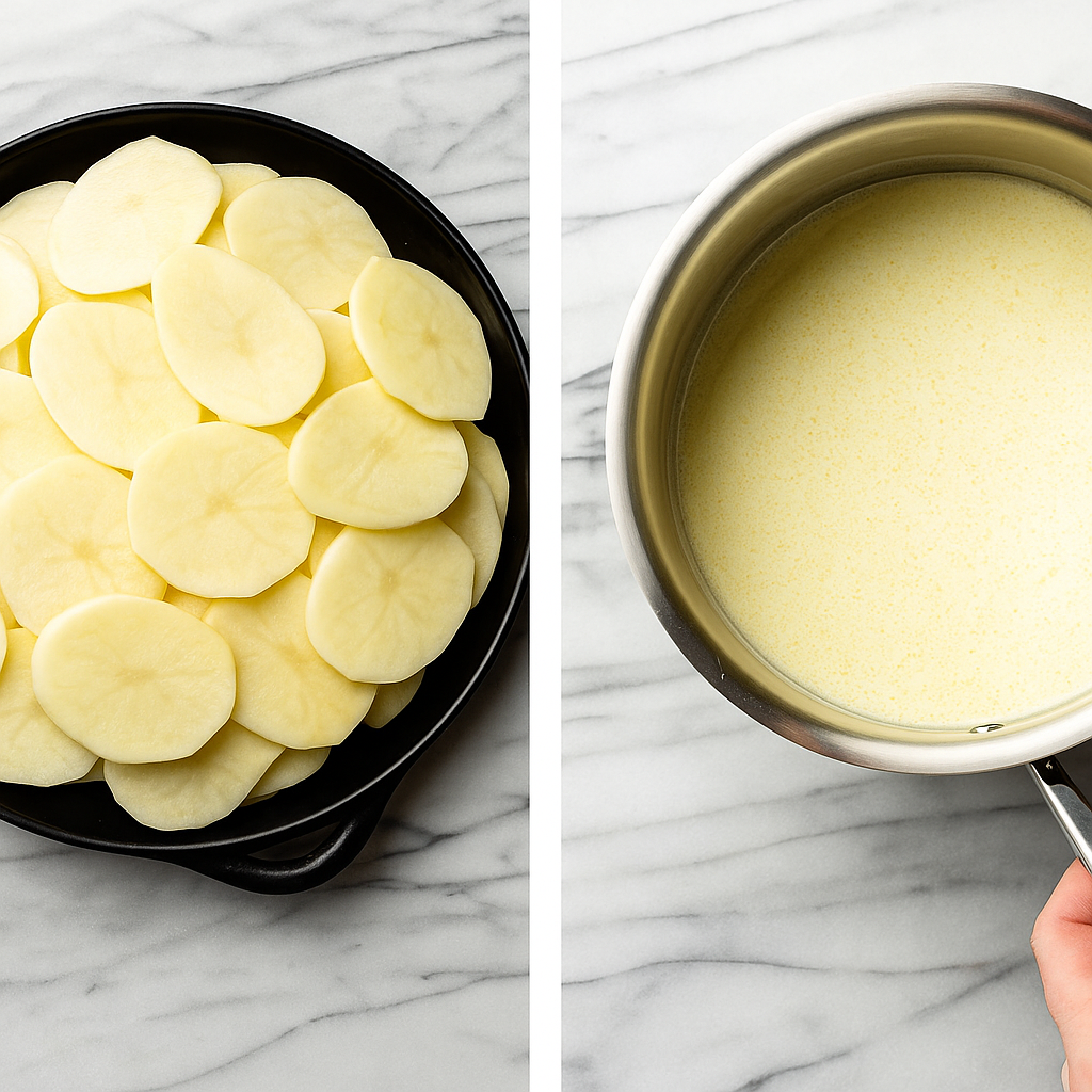 - Potato Preparation: Wash and peel potatoes thoroughly. Using a sharp mandoline slicer or knife, cut potatoes into uniform 1/8-inch thick slices. Consistency is key—uneven slices result in uneven cooking. Place sliced potatoes in cold water to prevent browning while preparing the sauce.