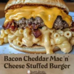 Bacon Cheddar Macaroni and Cheese Stuffed Burger