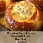 A delightful union of freshly baked pretzel bread bowls filled with a rich and creamy leek-beer soup, perfect for cozy gatherings.