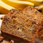 Enjoy banana bread warm or at room temperature. You can serve it plain, or add a layer of butter for extra richness. It’s great for breakfast with coffee or tea, and it makes a wonderful snack or dessert.