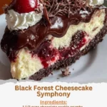 When serving this Black Forest Cheesecake Symphony, presentation is everything! Serve slices on elegant dessert plates and drizzle extra cherry pie filling on the side for a pop of color. A dollop of fresh whipped cream on top adds a light texture that complements the richness of the cheesecake. This dish pairs wonderfully with a cup of coffee or a sweet dessert wine, making those after-dinner moments even more special.