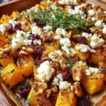 Caramelized Butternut Squash with Feta, Walnuts, and Cranberry-Honey Glaze is a delightful dish that’s perfect for any occasion. This recipe brings together the natural sweetness of roasted butternut squash with the tanginess of feta, the crunch of walnuts, and a luscious cranberry-honey glaze. It’s simple to make, bursting with flavor, and can be customized to suit your taste or the ingredients you have on hand.