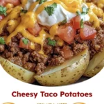 Keyword Cheesy Taco Potatoes, Comfort Food, Easy Dinner, Stuffed Potatoes, Weeknight Meal
