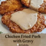 - Serve the crispy chicken-fried pork chops with gravy poured generously on top. Enjoy!