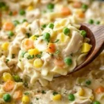 Chicken Pot Pie Pasta is a comforting, creamy dish that combines the flavors of traditional chicken pot pie with tender egg noodles. This hearty meal is perfect for busy weeknights and is sure to please the whole family. With a savory sauce, mixed vegetables, and juicy chicken, this recipe is a delightful twist on a classic favorite.