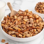 Churro Chex Mix can be enjoyed straight from the bowl or served at parties as a delightful snack option. To elevate your presentation, serve it in small treat bags or cute mason jars for individual portions. For a festive twist, consider pairing it with hot cocoa or a scoop of vanilla ice cream for a decadent dessert experience.