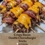 These Crispy Bacon Double Cheeseburger Sticks are sure to become a new favorite in your recipe lineup. Enjoy the crispy bacon, savory beef, and gooey cheese all stacked on a convenient skewer, making it perfect for any gathering or weeknight dinner!