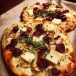 Crispy Flatbread with Brie, Cranberries & Toasted Almonds is a delicious and easy appetizer or light meal that brings together bold flavors and delightful textures. The creamy brie cheese melts perfectly over the crispy flatbread, while the sweet cranberries and crunchy almonds add a wonderful contrast. This dish is perfect for gatherings, casual dinners, or just a cozy night in.