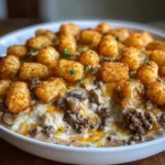 A hearty and easy-to-make casserole with layers of crispy tater tots and creamy sauce, perfect for busy days and family gatherings.