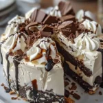 This dessert is best served chilled from the refrigerator. You can slice it into squares or wedges and top it with whipped cream, chocolate sauce, or chocolate bars for added flair. It’s a perfect dish for parties, picnics, or family gatherings.