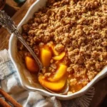 - Bake: Bake in the preheated oven for 30–35 minutes, or until the topping is golden brown and the peach filling is bubbly around the edges.