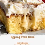 This Eggnog Poke Cake is a showstopper on its own but can be enhanced with some festive flair. Consider pairing it with a cup of steaming hot cocoa or a glass of extra eggnog for the full holiday experience. You could also add a side of spiced nuts or seasonal fruits for a refreshing contrast.