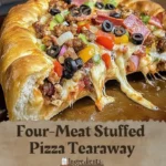 This Four-Meat Stuffed Pizza Tearaway shines when served fresh out of the oven. Consider adding a side of fresh salad or garlic bread for a complete meal. A flavorful dipping sauce like ranch or garlic butter elevates the pizza-dipping experience.