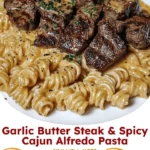 Garlic Butter Steak Bites & Spicy Cajun Alfredo Twisted Pasta