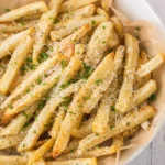 To serve your Garlic Parmesan Fries, consider plating them in a casual and fun way. Serve them in a basket lined with parchment paper or on a rustic wooden board. Pair them with a tangy dipping sauce like garlic aioli, ketchup, or a spicy sriracha mayo for an extra kick. These fries also make a perfect accompaniment to burgers, grilled meats, or as a standalone snack while binge-watching your favorite series.