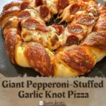 A fun and delicious twist on traditional pizza, this Giant Pepperoni-Stuffed Garlic Knot Pizza combines beloved flavors with the irresistible taste of garlic knots, perfect for gatherings or cozy dinners.