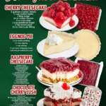 Prepare the Cherry Cheesecake: Combine graham cracker sheets, melted butter, and sugar, then press this mixture into the bottom of a pan. In a bowl, mix the cream cheese, Cool Whip, powdered sugar, and lemon juice until smooth. Pour this creamy mixture over the crust and top it with the cherry pie filling. Chill in the refrigerator before serving.