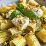 Lemon Pesto Rigatoni with Burrata & Roasted Pine Nuts is a bright and creamy pasta dish that bursts with flavor. It combines the rich taste of pesto, the refreshing zing of lemon, and the luxurious creaminess of burrata cheese. This recipe is perfect for a quick weeknight dinner or a special meal to impress your friends.