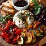 If you have leftovers, store the Mediterranean Burrata & Roasted Veggie Board in an airtight container in the fridge. It’s best to keep the burrata separate from the roasted veggies to maintain its creamy texture. You can enjoy any leftovers cold the next day, or gently reheat the vegetables in the oven. For longer storage, freezing is not recommended, as the texture of the burrata may change.