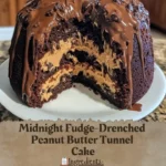 Now, you’re all set to create and savor this delicious indulgence that will surely become a favorite in your dessert repertoire! Enjoy every bite of your Midnight Fudge-Drenched Peanut Butter Tunnel Cake.