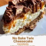 Indulging in a No Bake Twix Cheesecake is a delightful experience that will please your taste buds and simplify your dessert preparation. This creamy cheesecake, layered with chocolate, caramel, and crunchy Twix bars, requires no oven time, making it perfect for busy days or spontaneous gatherings. With its rich flavor and light texture, it’s a showstopper that can be customized to suit your preferences.
