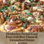 Oktoberfest Pretzel Crust Pizza with Beer Cheese & Caramelized Onions