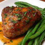 • Plate the chicken with green beans and drizzle extra sauce on top.