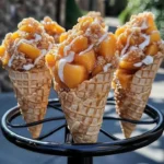Peach Cobbler Dessert Cones are a delightful twist on the classic peach cobbler. They are portable, fun to eat, and perfect for a summer treat. The combination of sweet peaches and crumbly topping in a cone makes this dessert a unique and enjoyable experience.