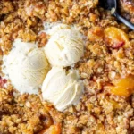 Peach Crisp is best served warm. You can scoop it into bowls and add a generous scoop of vanilla ice cream or whipped cream on top. This creamy addition will balance the sweetness of the peaches and the crunch of the topping, making for a delicious dessert experience.