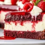 Serve slices of Red Velvet Cheesecake Bliss with a dollop of whipped cream and a handful of fresh berries on the side for an elegant touch. It pairs beautifully with a cup of coffee or tea, making it the perfect dessert after a cozy dinner. For a festive touch, consider drizzle chocolate sauce over the top.
