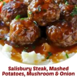 Salisbury Steak with Garlic Mashed Potatoes and Mushroom & Onion Gravy is a comforting and hearty meal that’s perfect for busy weeknights or weekend family dinners. This dish combines juicy beef patties with creamy mashed potatoes, all smothered in a rich mushroom and onion gravy. It’s simple to prepare, packed with flavor, and sure to please even the pickiest eaters at your table.