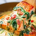Salmon in Roasted Pepper Sauce Recipe brings a nutritious and delicious meal to your table effortlessly. Salmon is packed with omega-3 fatty acids, making it a heart-healthy choice. The addition of vibrant roasted red peppers and fresh spinach not only enhances the flavor but also boosts the dish’s nutrient profile. This recipe is perfect for those looking to eat well without spending hours in the kitchen.