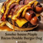 Indulge in the delightfully unique experience of a Smoke-house Maple Bacon Double Burger Dog at your next gathering, and watch as your friends and family rave about this culinary treat! Happy grilling!