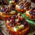 Indulgent Sweet Potato Rounds with Brie, Cranberry & Pecans