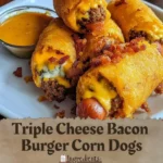 Serving Triple Cheese Bacon Burger Corn Dogs is part of the fun! You can display them on a platter or serve them in cute, individual cups for a game day treat. Pair them with crispy fries or a fresh side salad to balance the dish. Don’t forget to set up a condiment station with different dipping sauces—everyone loves a choice!