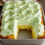 Fire up your oven to 350°F (177°C) first, then spray or grease a 9×13 dish so nothing sticks later. Toss the dry angel food mix, instant pistachio pudding, eggs, oil, and pineapple plus all its juice into a roomy bowl. Grab your whisk or mixer and blend everything until it looks silky and lump-free. Pour the finished batter into your prepped dish and bake for about 30–35 minutes. You’ll know it’s done when a toothpick poked in the middle comes out clean. Take the cake out and let it cool right in the pan on a rack—don’t even think about frosting until it’s totally cool. Beat the other box of pistachio mix with cold whole milk until it starts to thicken up in a bowl. Take your thawed whipped topping and gently stir it into the thick pudding until well blended, but don’t overmix. Spread that fluffy frosting all over the cooled cake, cover loosely, and chill it at least 2 hours to let everything set. Just before cutting, throw some chopped pistachios on top and you’re ready to dish out slices.
