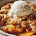 A delightful dessert showcasing the natural sweetness of fresh peaches with a buttery topping, perfect for both beginners and seasoned bakers.